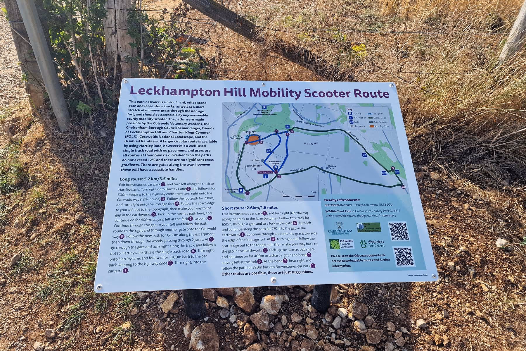 There are numerous routes across Leckhampton Hill and the Common, with sections forming part of the Cotswold Way. There are several car parks and starting points to choose from - for a more challenging route, incorporating the steep ascent from the base, start from the car park on Daisy Bank Road. For a gentler route you can start from Brownstones carpark, this route provides an accessible trail that loops around the top of the hill, there is also a mobility trail starting from this point.